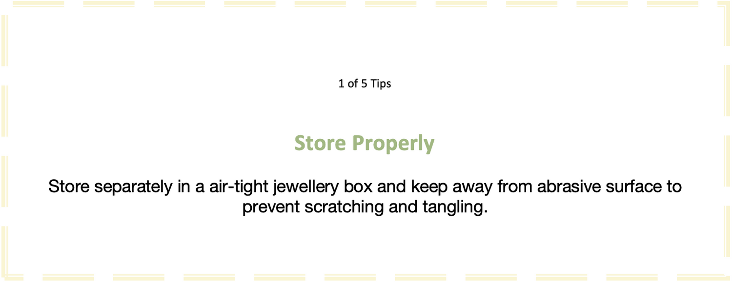 Clean regularly and store them in proper places if not wearing to maximise their lifespan.